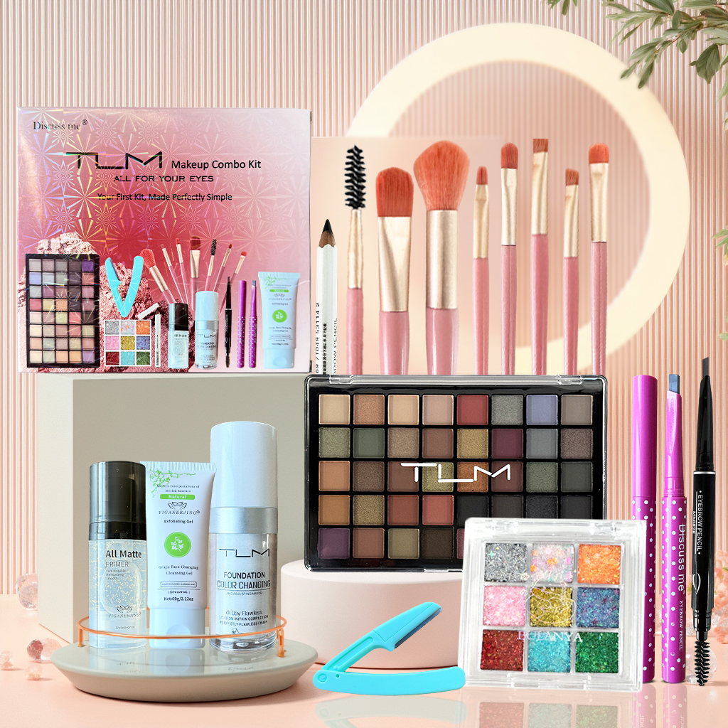 The TLM makeup set includes 18 items such as eyeshadow palette, foundation liquid, exfoliating gel, essence liquid, eyebrow pencil, eyebrow shaping knife, etc., to create a stunning look.
